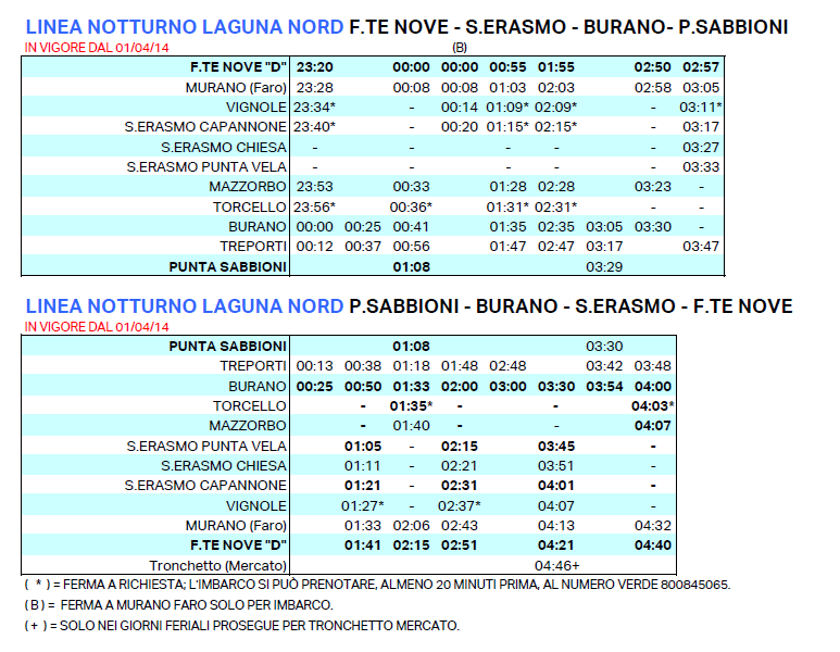Night Service with the line "N" (Notturno Laguna Nord) :